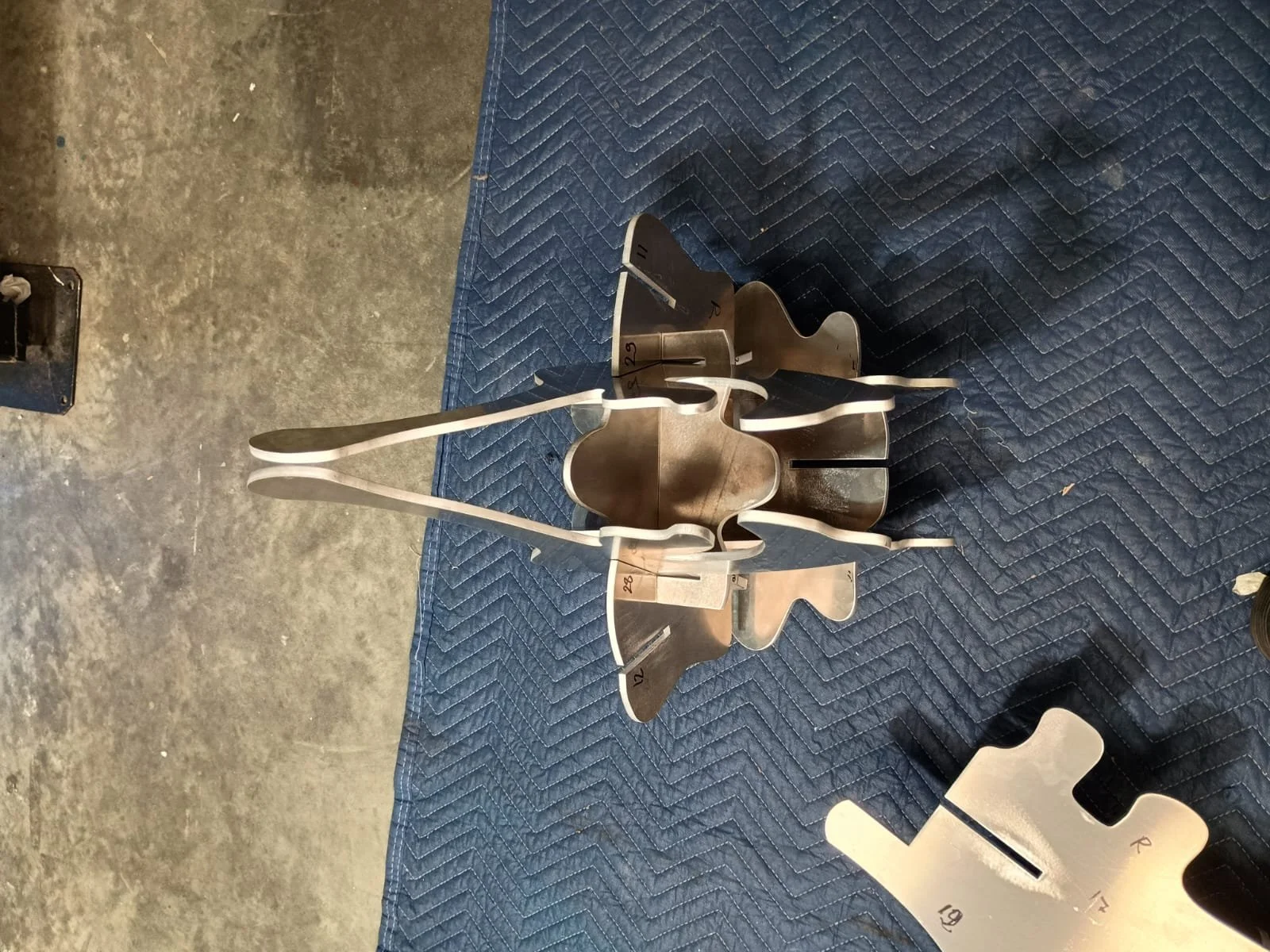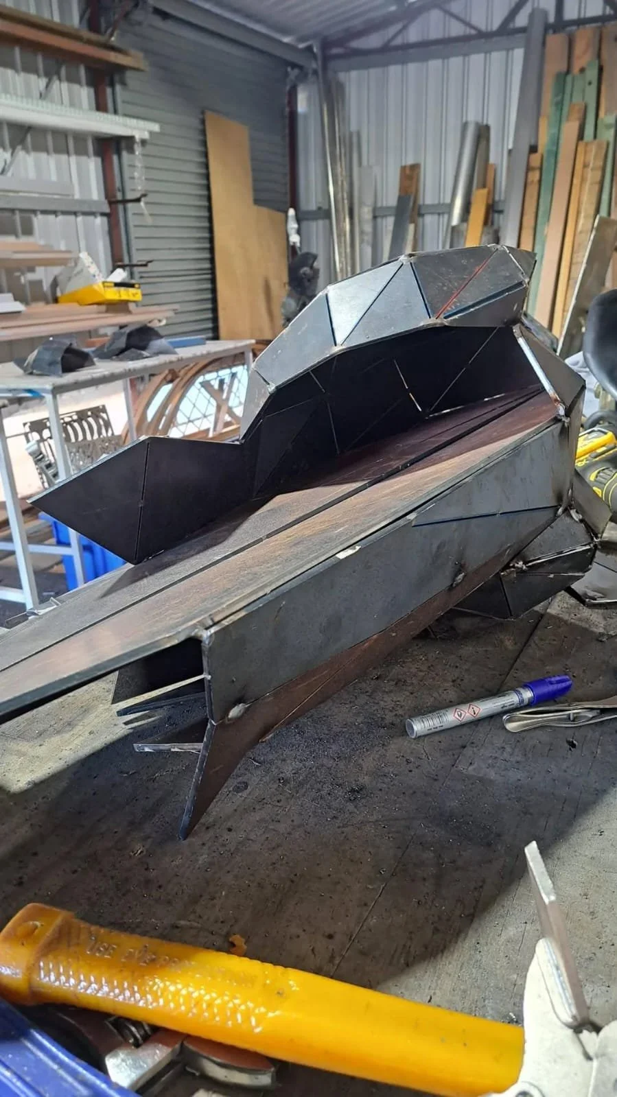 Replicating plywood concept model. Bending and cutting sheets to size, modeling connectors extrusions, welding artwork (MIG, TIG), welding cap (MIG, TIG)
